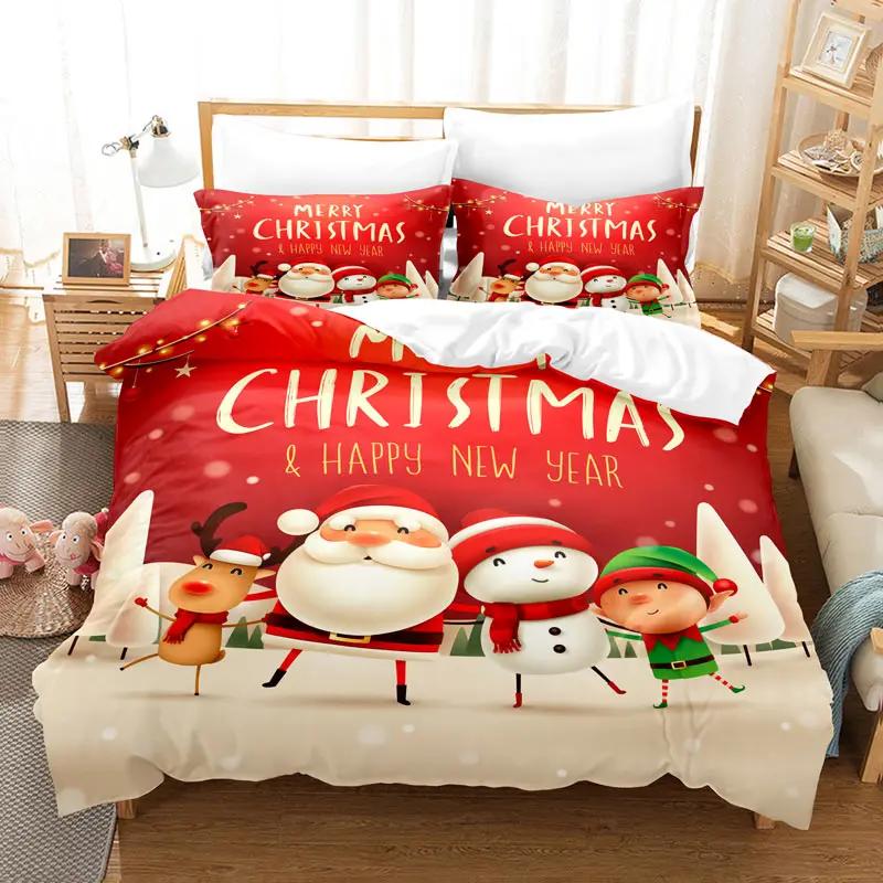Рождественский комплект постельного белья из полиэстера, пододеяльник, одеяло, наволочка, 3D, красный, двуспальный, полный, двуспальный, двуспальный, односпальный, 2/3 шт., спальня