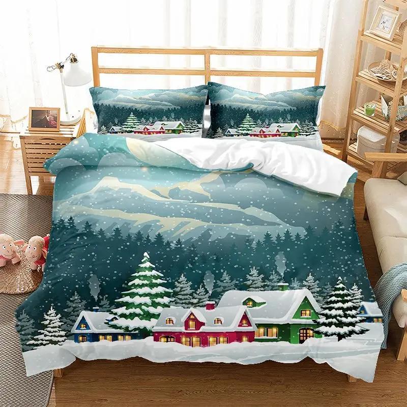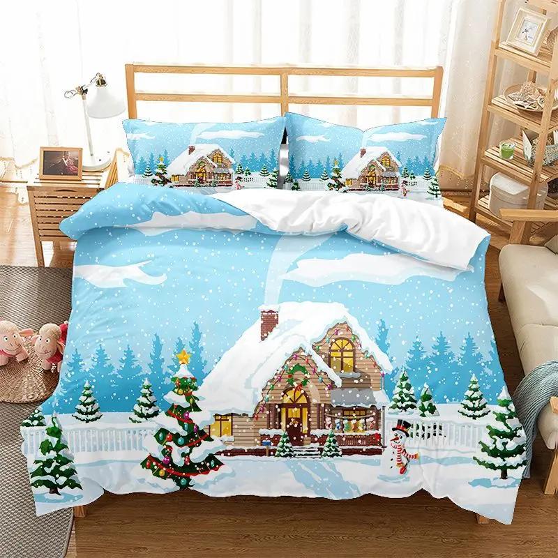 Рождественская снежинка Полноразмерный комплект постельного белья Принт Красочный Счастливого Рождества Подарок Елка Ткань из микрофибры 2/3 шт. Комплект пододеяльника Детский