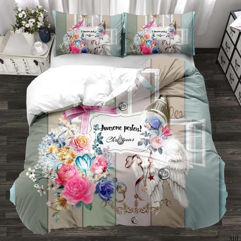Свадебный узор Цветочный постельный комплект Зимние комплекты пододеяльников Реактивная печать Розовые комплекты пододеяльников Красный Взрослый Кинг Дропшиппинг