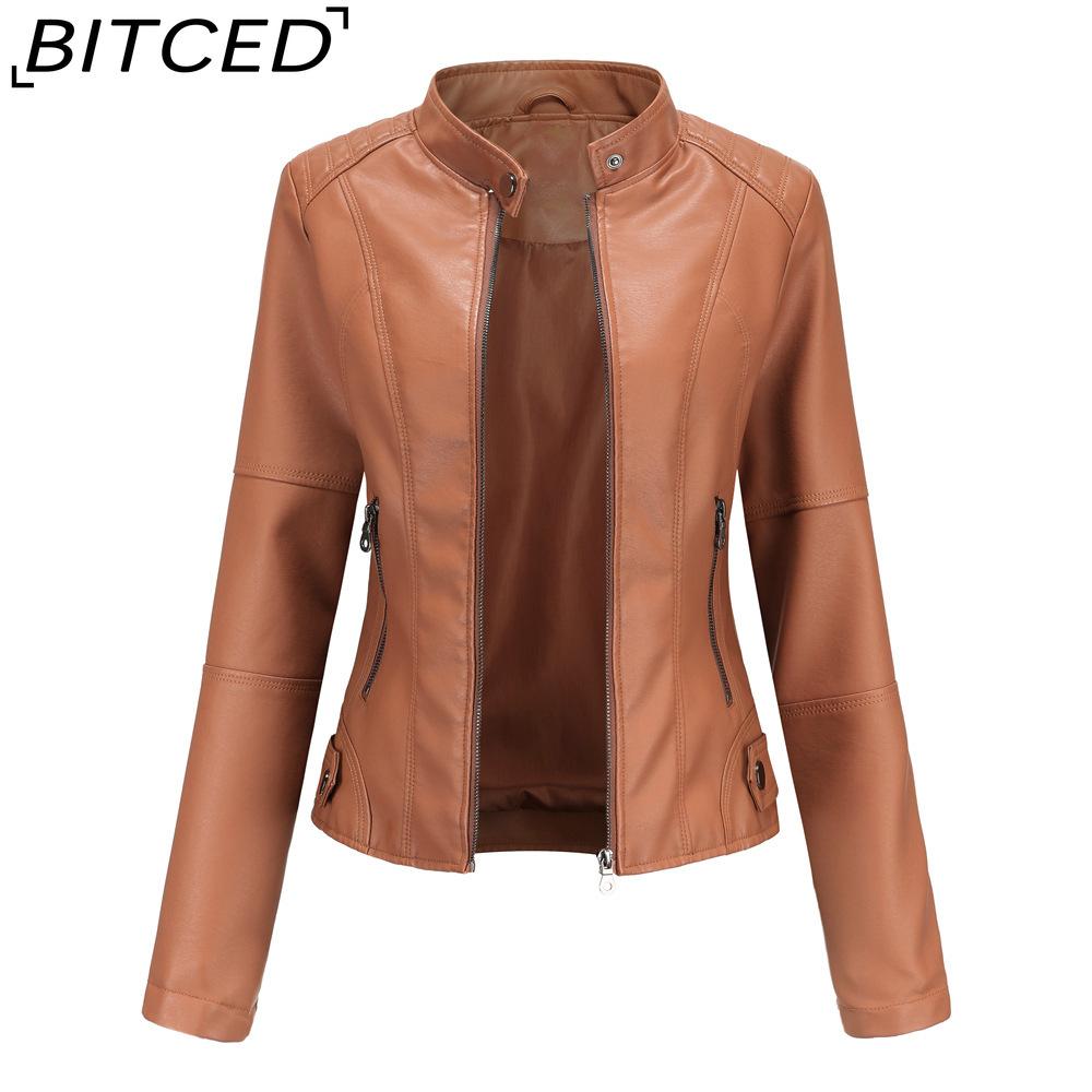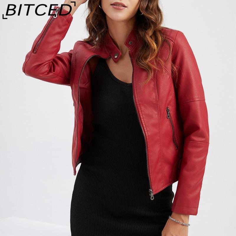 BITCED Женская кожаная куртка приталенного силуэта - Легкая демисезонная верхняя одежда в мотоциклетном стиле, оверсайз, со стойкой