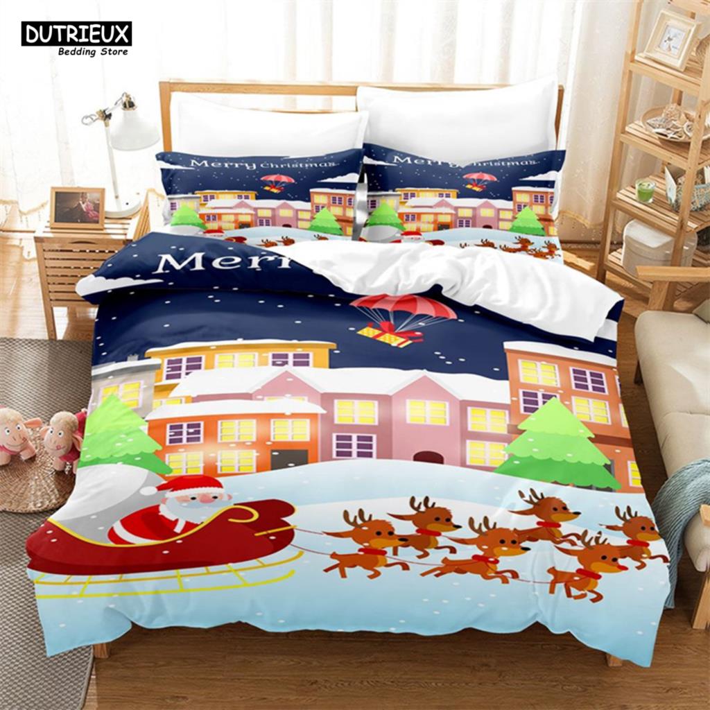 Рождественский комплект постельного белья с изображением Санты, зимний комплект постельного белья с героями мультфильмов, микрофибра, одеяло с изображением кареты Санта-Клауса и лося, покрывало для девочки и мальчика