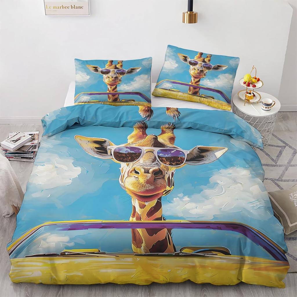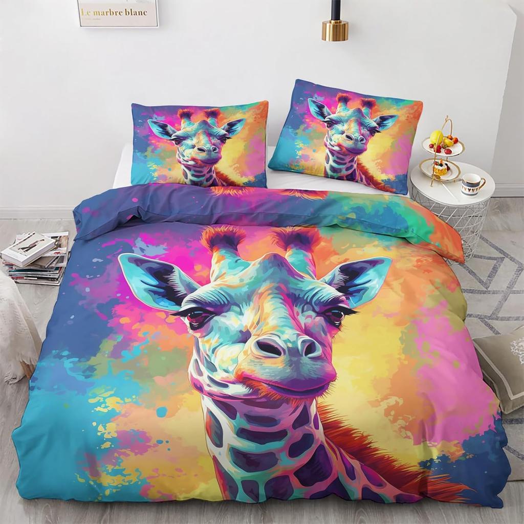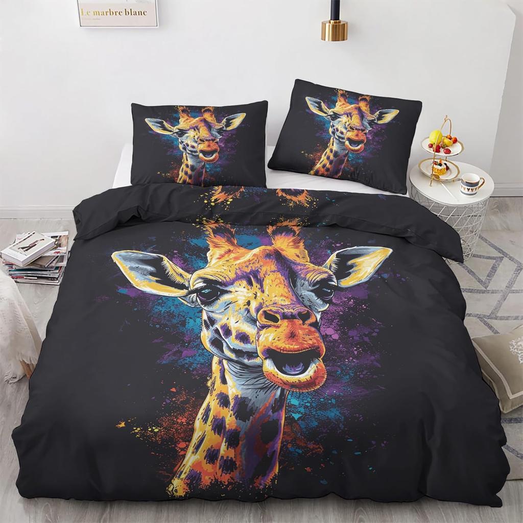 Забавный пододеяльник с жирафом Кинг 3 предмета Красочный комплект постельного белья с животными, Мягкий микрофибровый комплект пододеяльника с граффити и наволочками