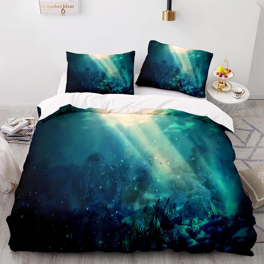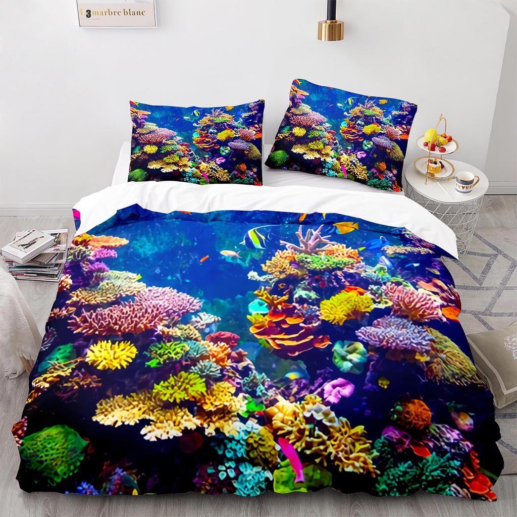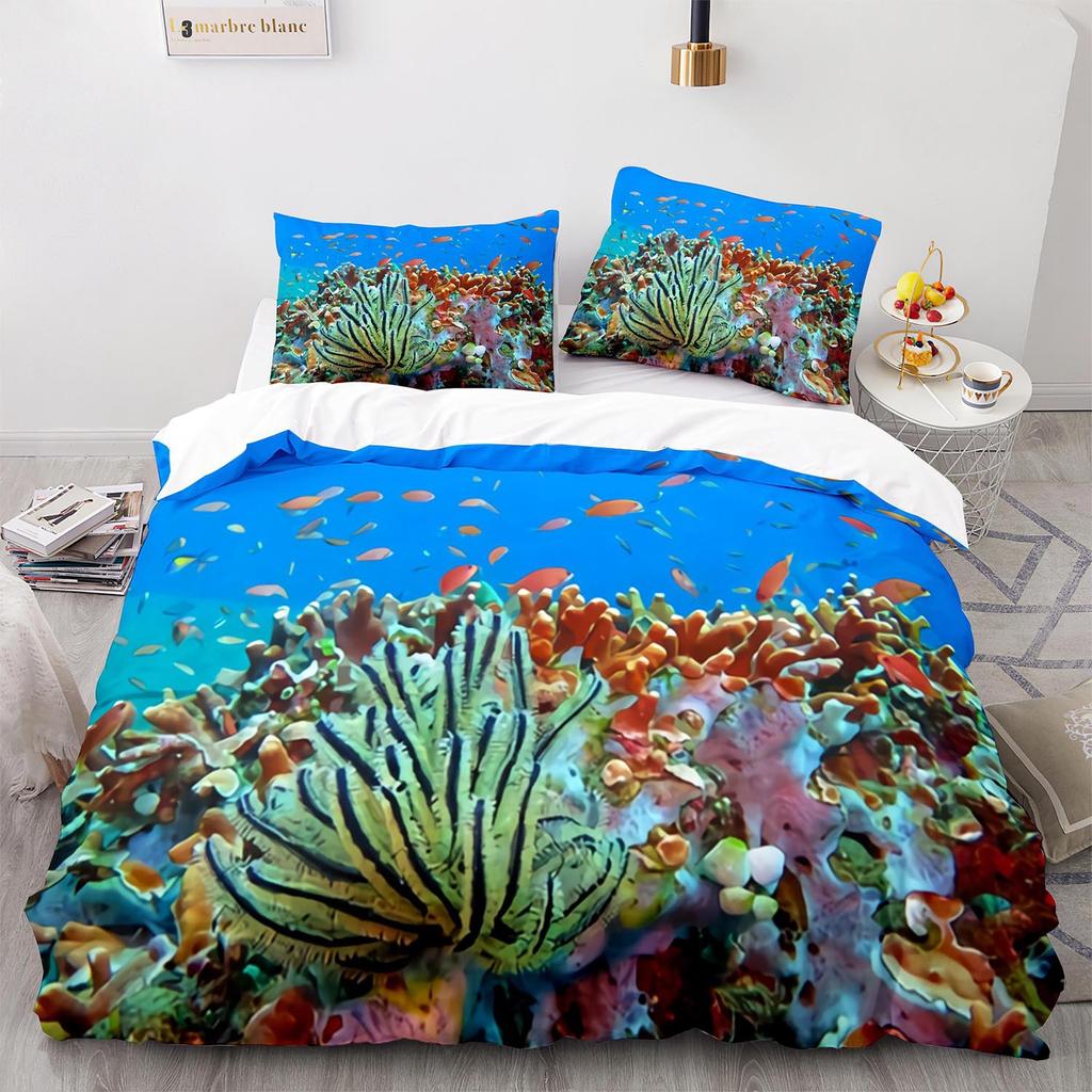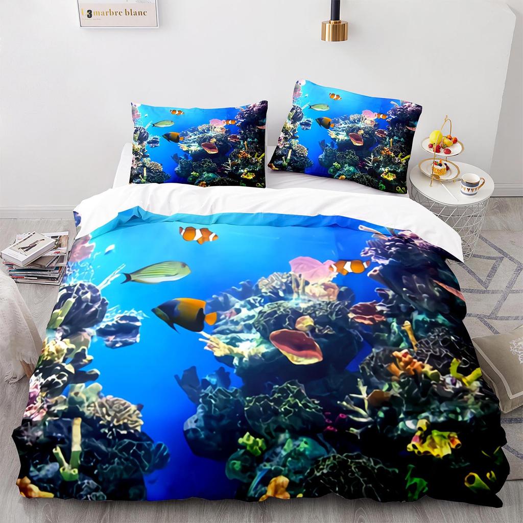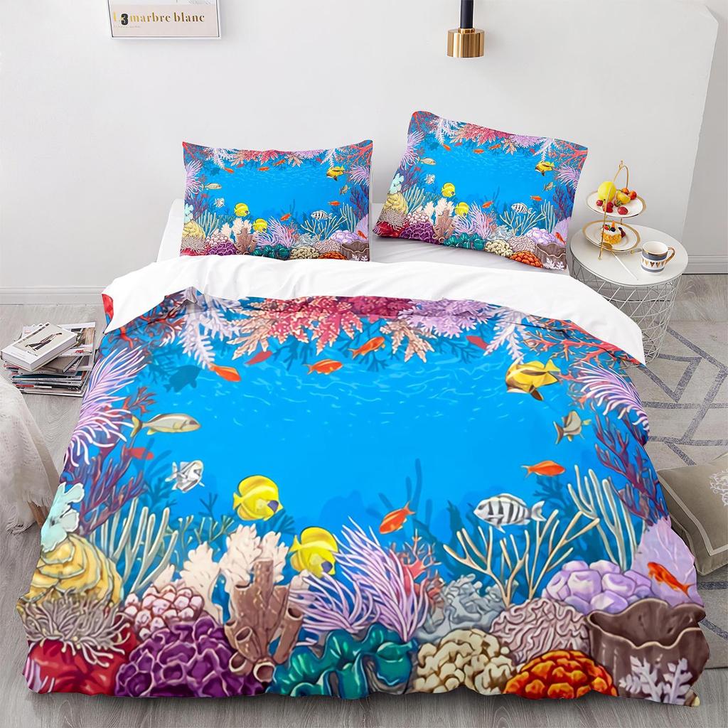 Пододеяльник Кинг/Квин «Подводный мир» Мультяшный комплект постельного белья с океанскими животными для детей Рыбы Кораллы Морская жизнь Мягкий полиэстеровый пододеяльник