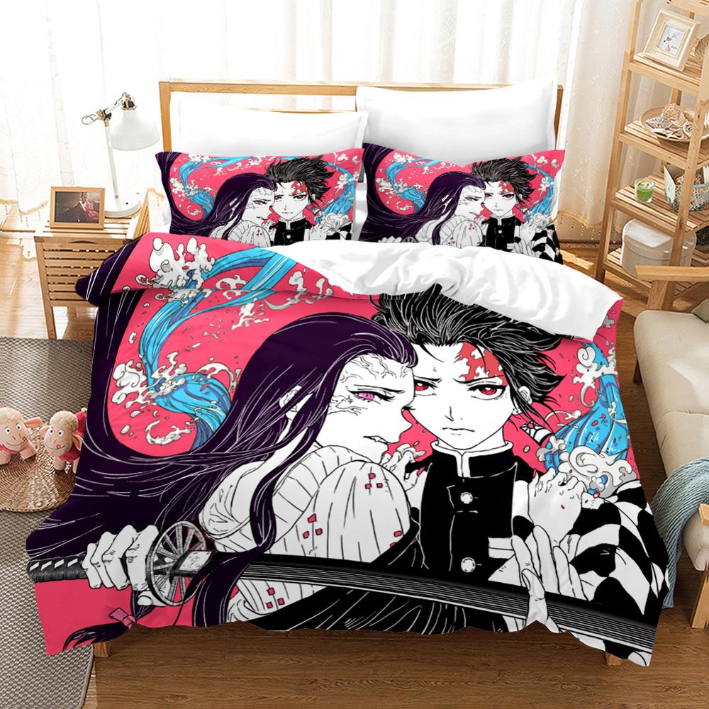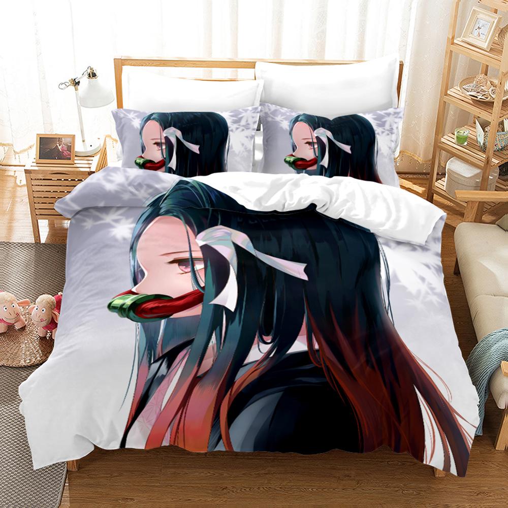 Новый комплект постельного белья с рисунком из японского аниме «Убийца демонов», микрофибра, пододеяльник, комплект наволочек, мягкое постельное белье