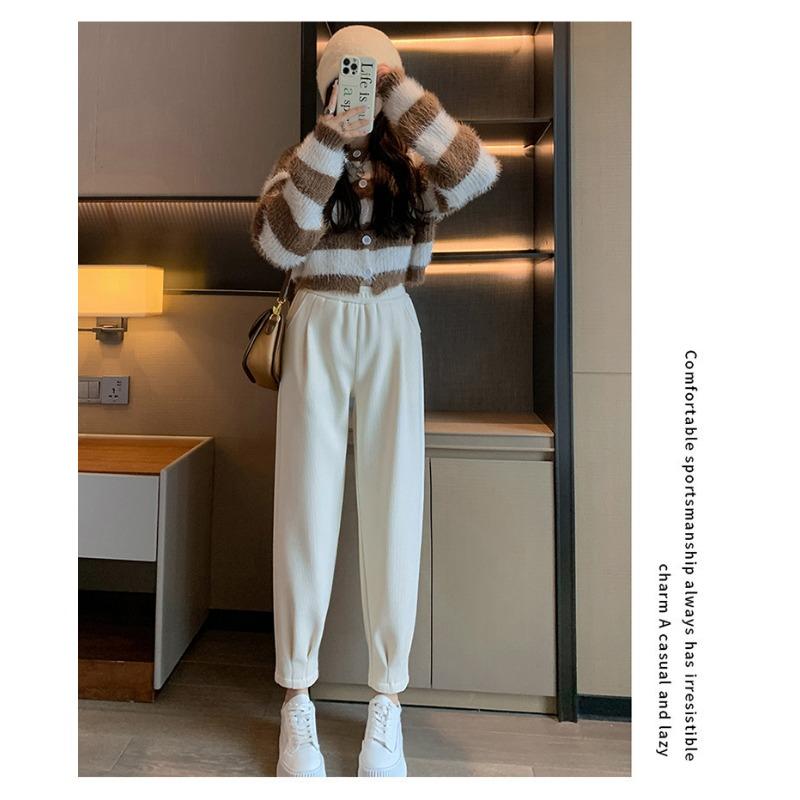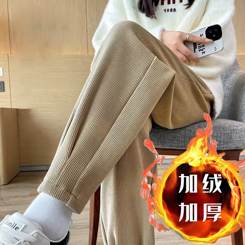 Осень Зима Эластичная талия Однотонные Свободные Повседневные Брюки гаремы Женские Простые На все случаи жизни Вельветовые Теплые Брюки