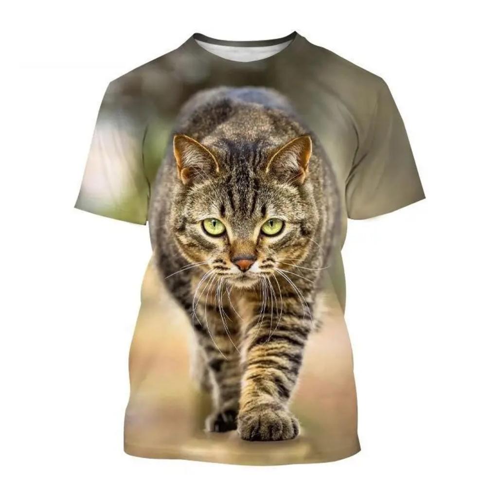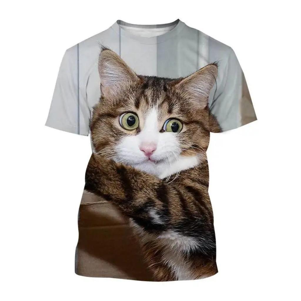Новая футболка с 3D-принтом кошки, повседневная футболка с круглым вырезом для мальчиков, в стиле харадзюку, летний уличный стиль, легкий топ