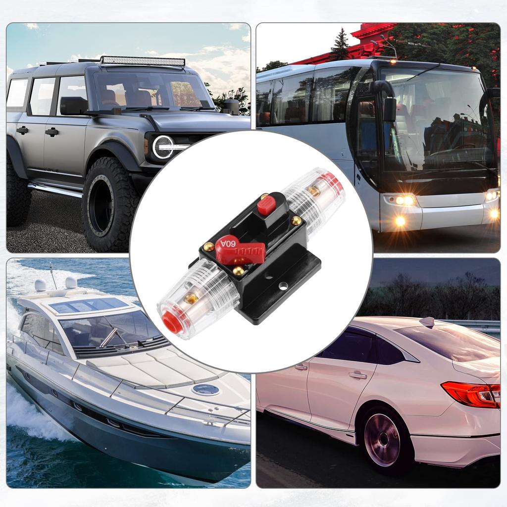 uxcell Car Circuit Breaker with Manual Reset Inline Fuse Holder Protection DC - 48V 60A Black Red 1 Set