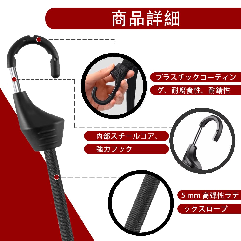 Грузовые ремни, Эластичные багажные шнуры, Переносочные шнуры, Велосипеды, Мотоциклы, Багажные крепежные ремни, Эластичные усиленные ремни (90см, Черный)