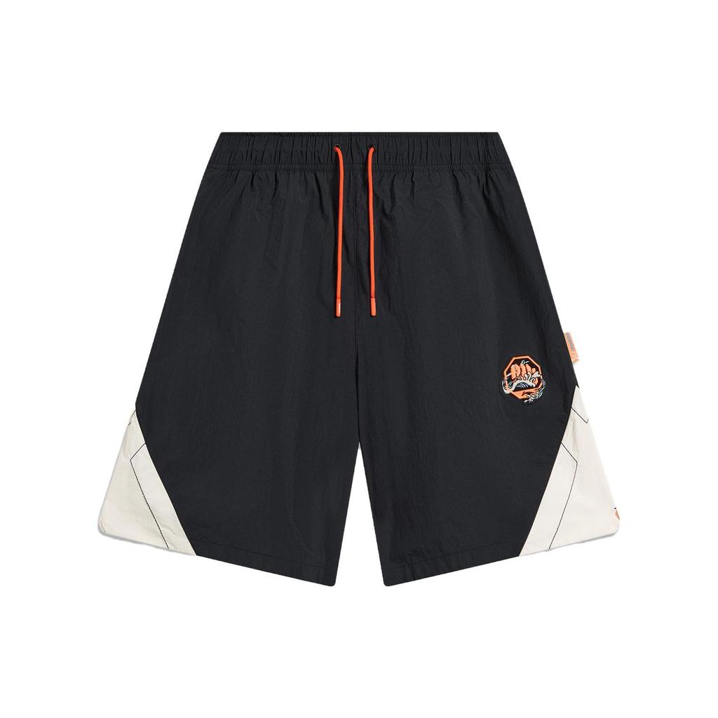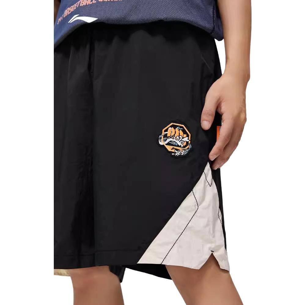 Li Ning Badfive Сотрудничество Семь Городов Однотонные Шорты с Завышенной Талией Прямые Свободные Повседневные Мужские шорты Черный AKST833-1