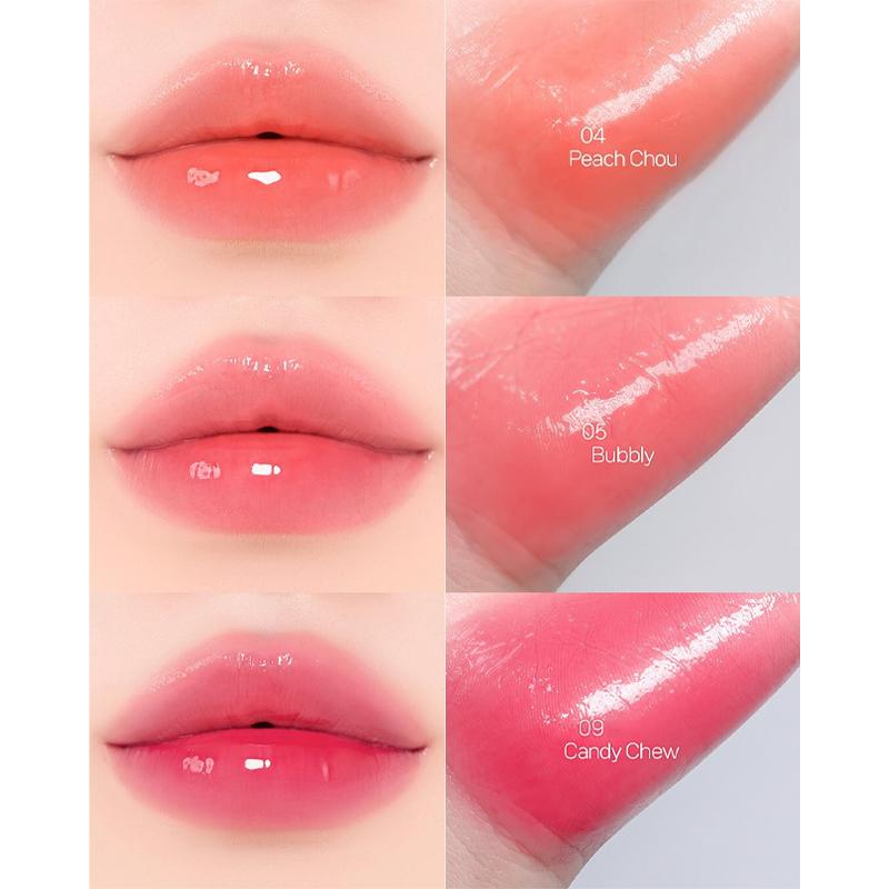 Прозрачная и яркая текстура : Сохраняет свой первоначальный цвет даже после носки, придавая губам свежий, глянцевый и чистый вид без тусклости или выцветания.. Текстура легко скользит и обеспечивает увлажненный эффект «водяного сияния» для яркого, полупрозрачного блеска.