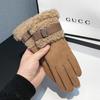 Перчатки женские зимние бархатные утолщенные теплые для улицы, для езды, вождения, катания на лыжах, непродуваемые, с сенсорным экраном, из овечьей шерсти