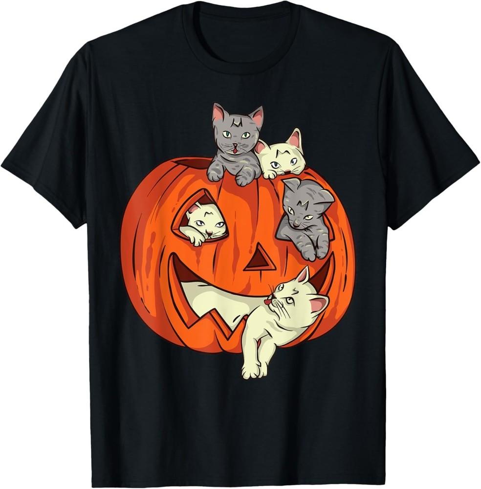 Cats Pumpkin Carved Jack O Lantern Cat Halloween Costume Men Women T-Shirt — купить товар онлайн с бесплатной доставкой по всему миру!