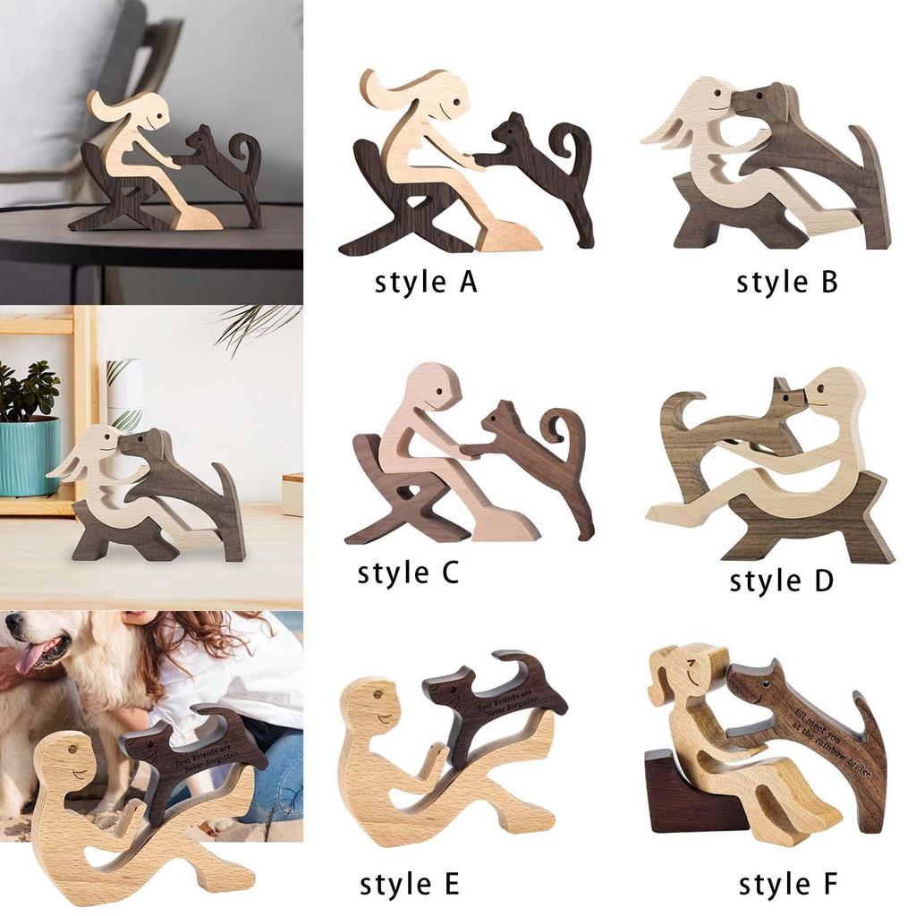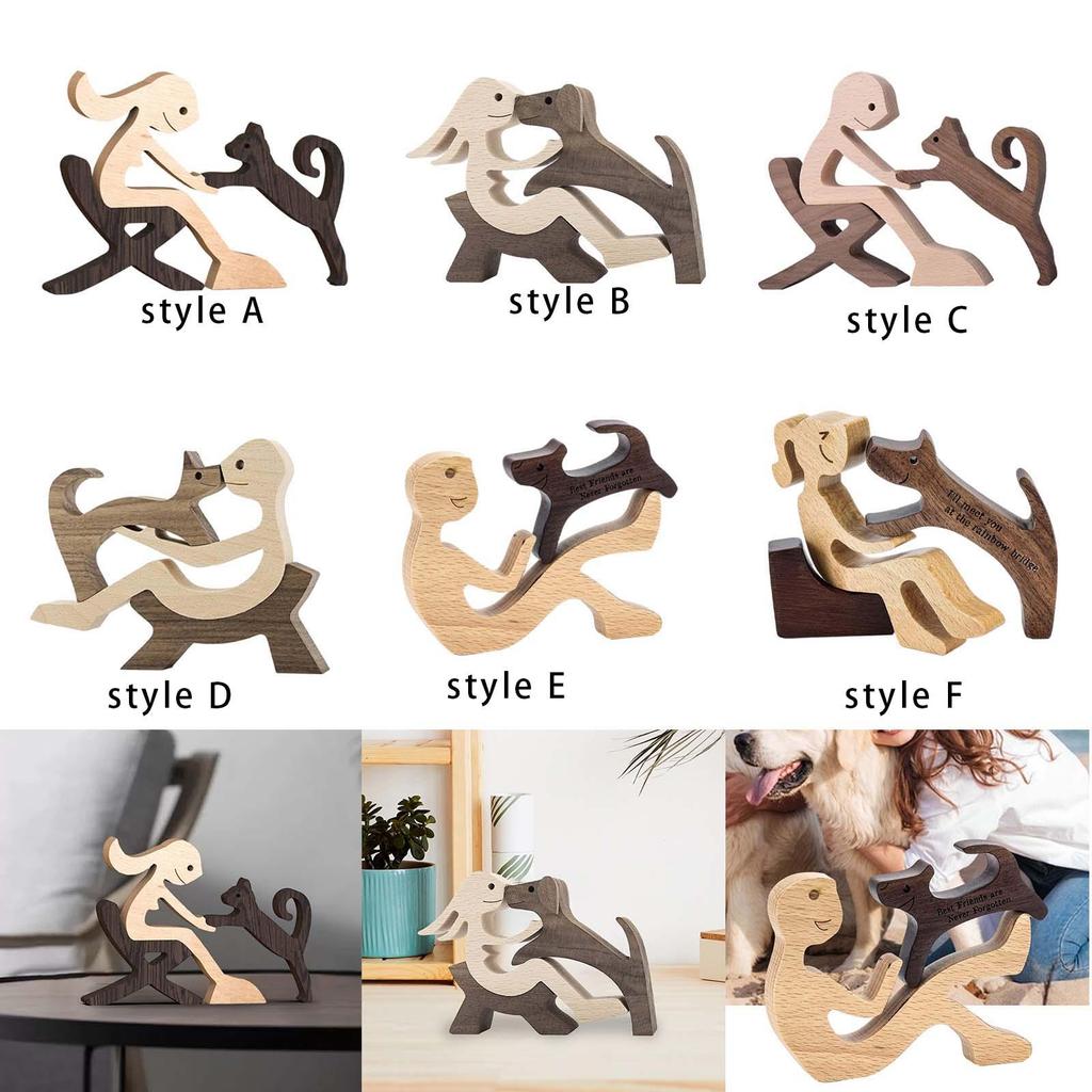 Сидящая женщина и собака Уникальный подарок Коллекция скульптур животных Резные из дерева Коллекционные фигурки Настольный декор для стола, полки
