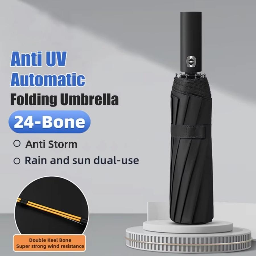 Ветрозащитный Большой Зонт Мужской, 106см Большой Однотонный Автоматический Зонт Прочный, 24 Спицы, Солнце-Дождь Складной Зонт Простой Стиль