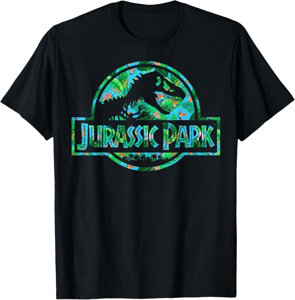 Футболка с логотипом ископаемого, заполненным тропическими деревьями парка Юрского периода