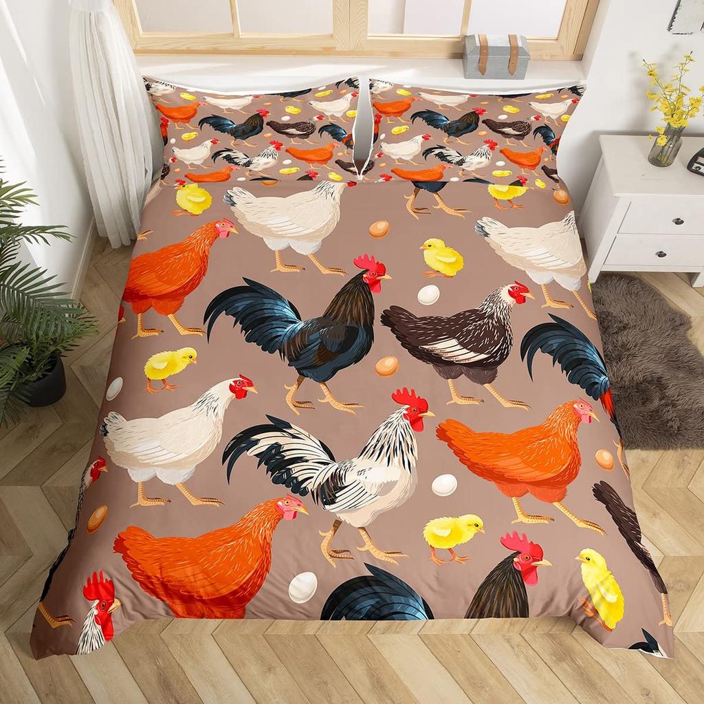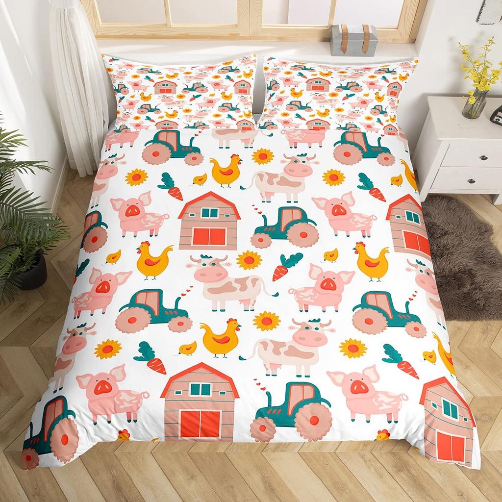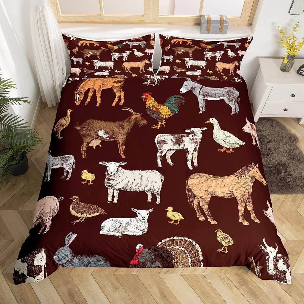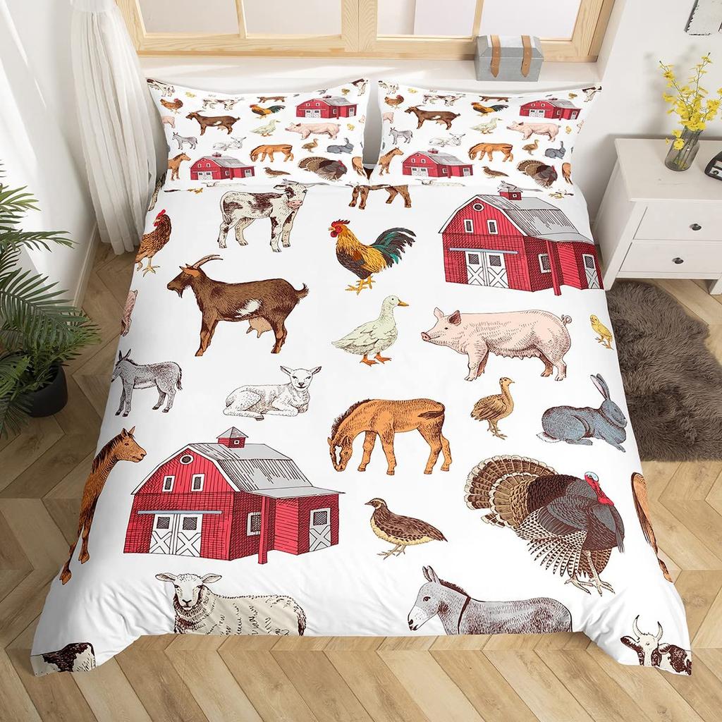 Постельное белье Король Королева Животные на ферме Петух Овца Свинья Корова Комплект постельного белья Фермерский дом Кантри Пододеяльник Полиэстер Чехол для одеяла