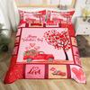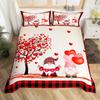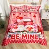 День святого Валентина King Пододеяльник Романтический комплект постельного белья Kawaii Парочка Гном Одеяло Чехол Розовые розы Сердца Полиэстер Одеяло Чехол