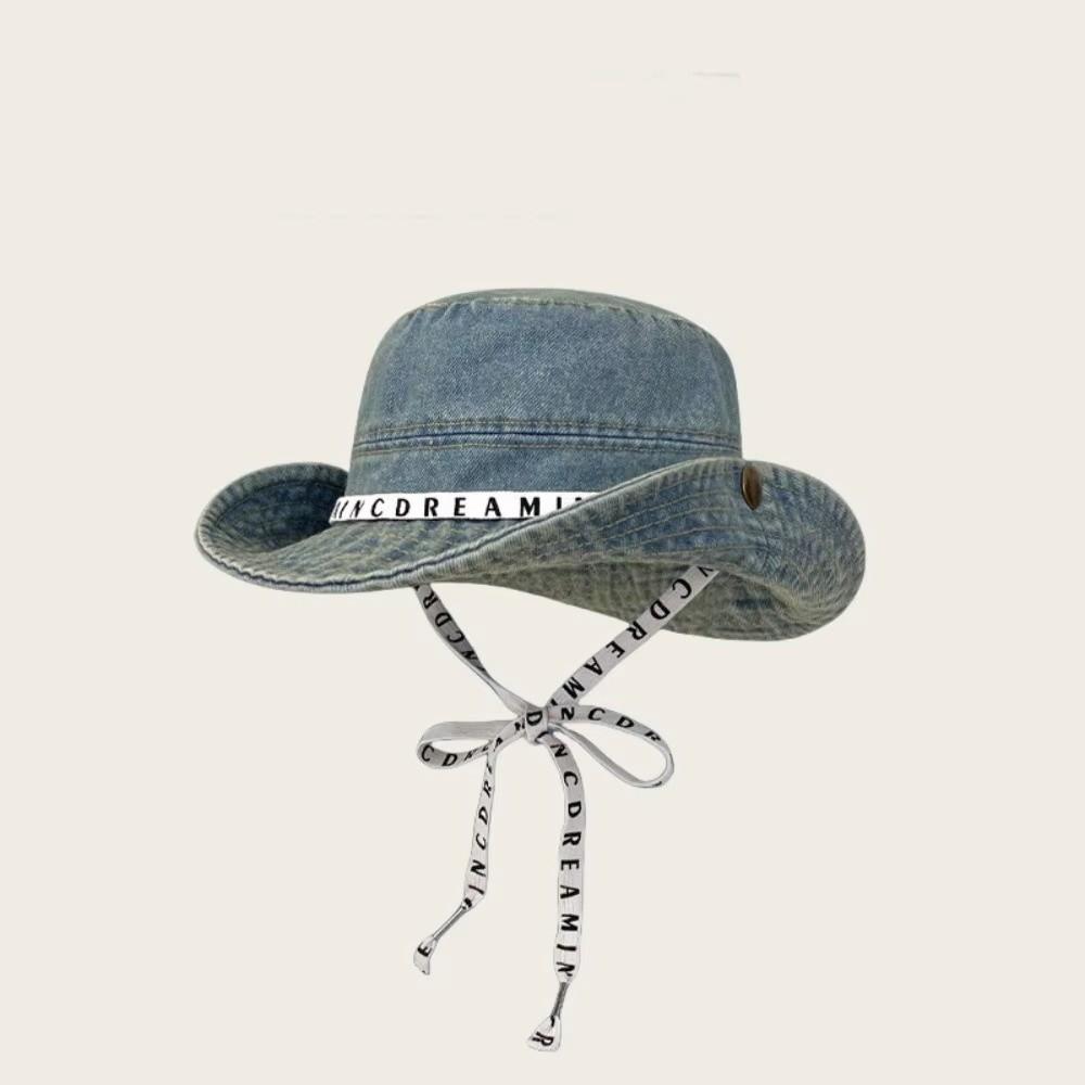 Ковбойская шляпа с широкими полями для походов, джинсовая шляпа рыбака, повседневная шляпа-ведро