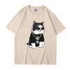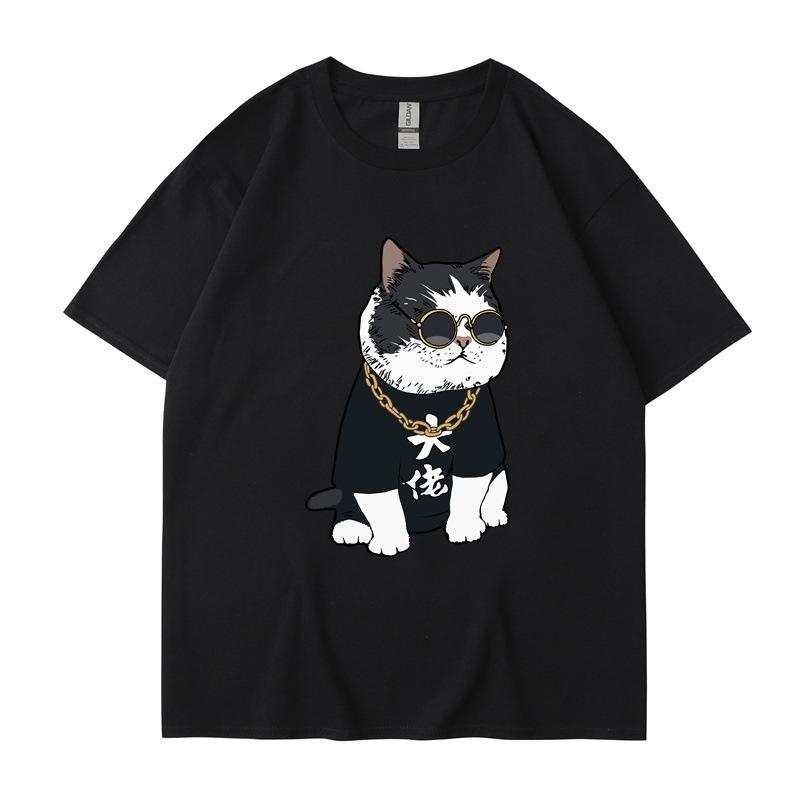 Летняя футболка с круглым вырезом, мультяшным милым принтом кота-босса, модная, повседневная, из чистого хлопка, с коротким рукавом, унисекс для мужчин и женщин
