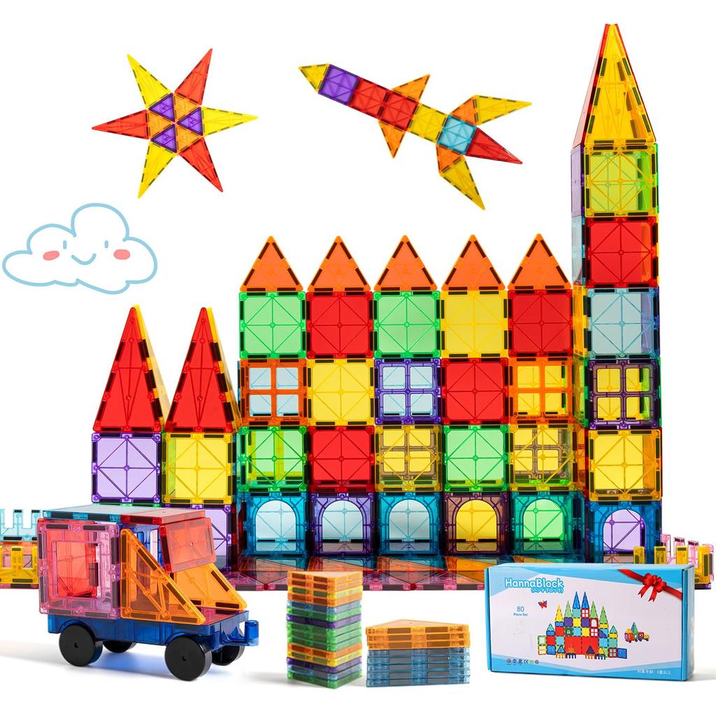 HannaBlock 80 Pcs Magnetic Building Blocks, Magnetic Toys for Kids, Educational Toys, Birthday Gifts, Christmas Gifts
