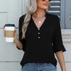Женские футболки с V-образным вырезом, однотонные, модные, со средним рукавом