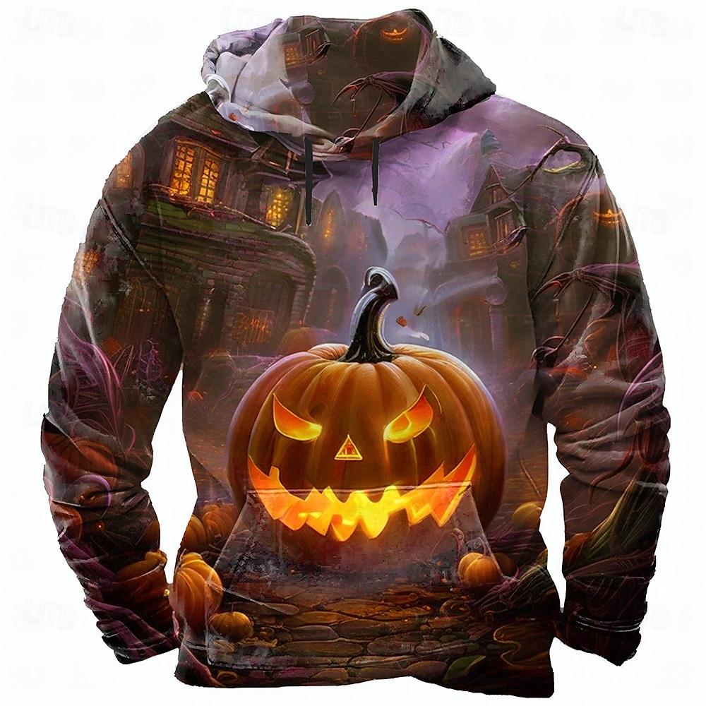 Мужская толстовка с капюшоном и 3D-принтом тыквы на Хэллоуин 2025 года, с длинным рукавом, круглым вырезом, уличная одежда, затягивающаяся на шнурок, осень-зима