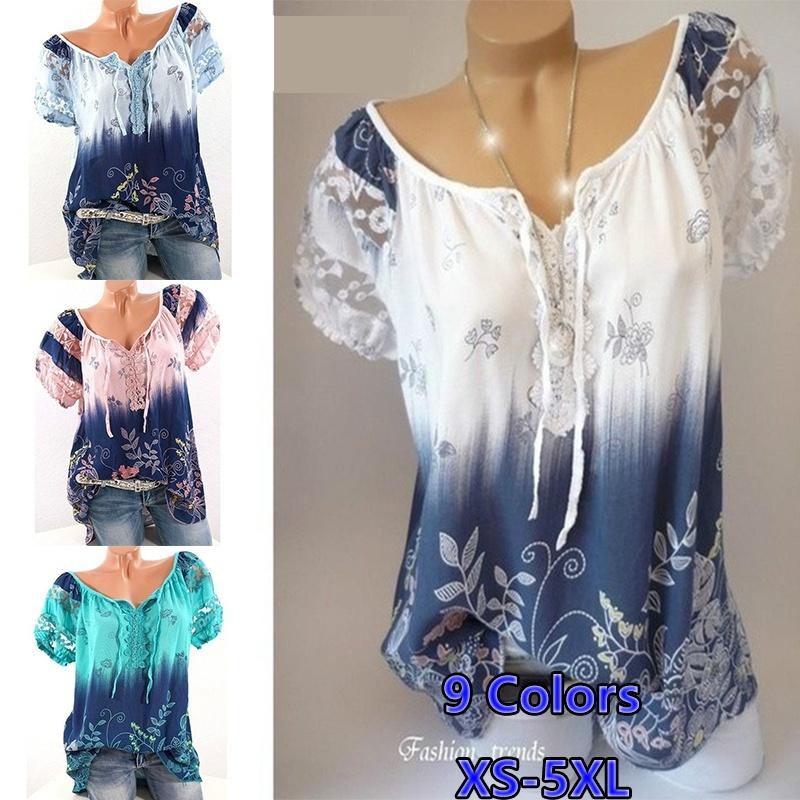 Новые женские летние повседневные топы с цветочным принтом, рубашки с коротким рукавом, блузки. Летняя мода, повседневный топ, блузка, большие размеры XS-5XL — купить товар онлайн с бесплатной доставкой по всему миру!