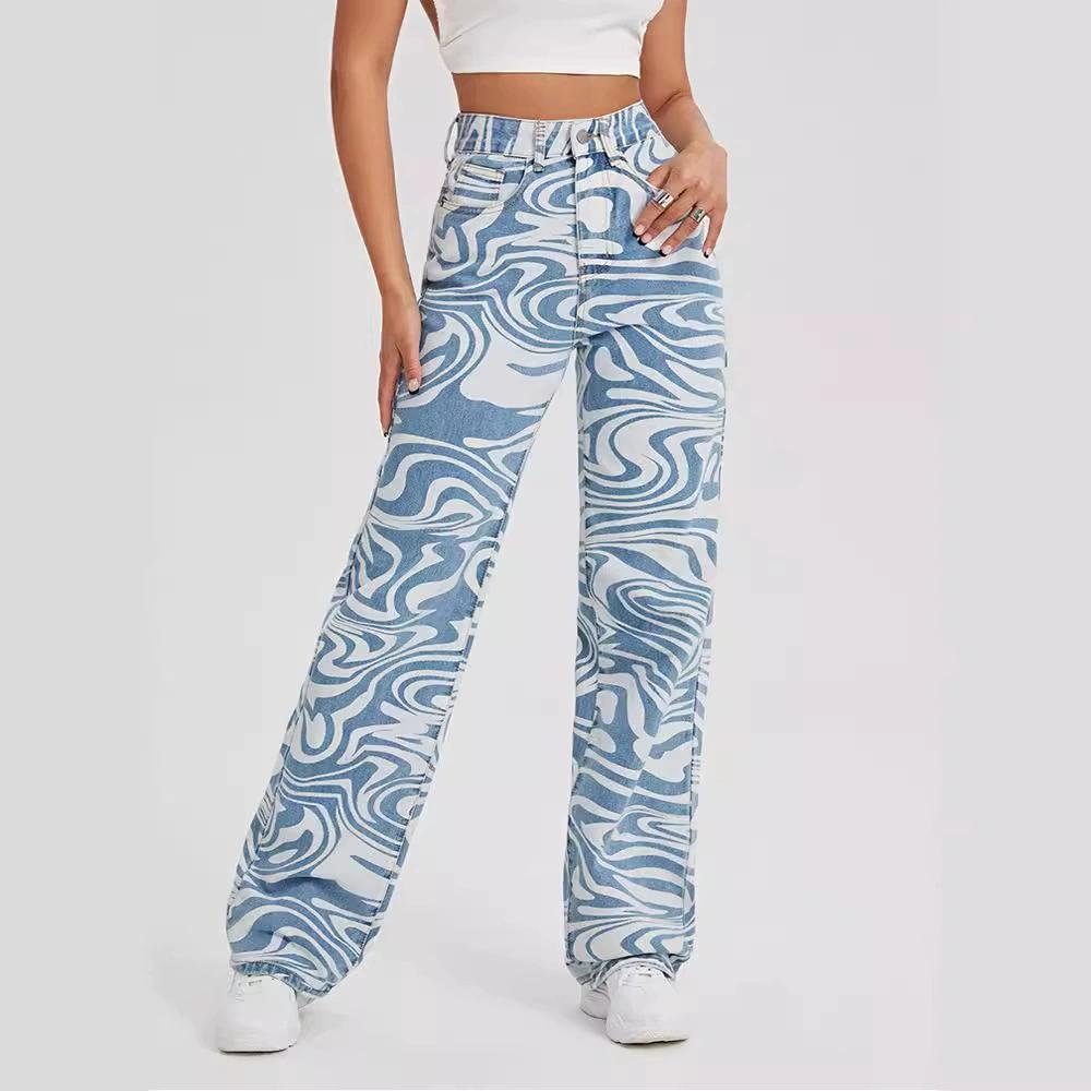 Джинсы женские с высокой посадкой с зебровым принтом, уличная одежда 90-х, брюки с широкими штанинами, джинсовые капри