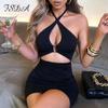 Летнее платье на бретелях, облегающее фигуру, женское, оранжевое, с вырезами, для пляжной вечеринки, без рукавов, с открытой спиной, мини, сексуальные платья