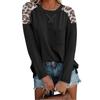 Осень и Зима Новая Футболка с Круглым Вырезом, Леопардовым Принтом, Нашивным Карманом, с Длинным Рукавом, Базовая
