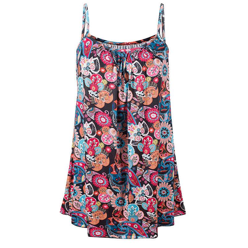 Топ на бретельках на спагетти, женские повседневные рубашки с цветочным принтом больших размеров, летняя уличная футболка с открытыми плечами