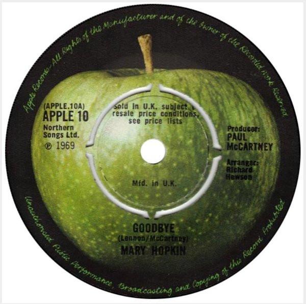 7inch Record MARY HOPKIN - Goodbye APPLE10 Apple Records 1969 UK Rock Used