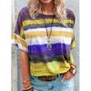 S-5XL Летние топы больших размеров Мода Женские повседневные футболки с коротким рукавом Блочный цвет Свободные топы Женские топы с круглым вырезом Полосатые принтованные хлопковые футболки