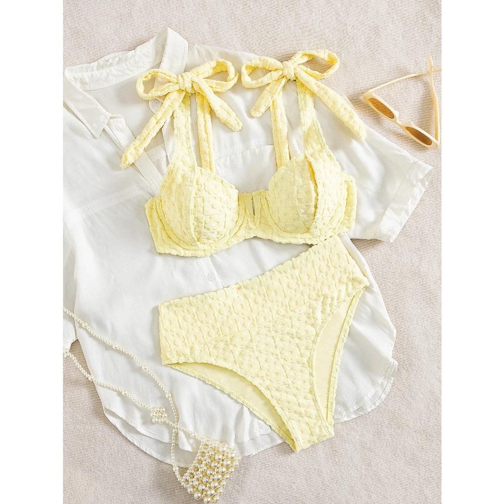 Сексуальный желтый комплект бикини 2025 женский завязки пуш-ап на косточках с высокой талией купальник летний купальный костюм раздельный купальник бикини