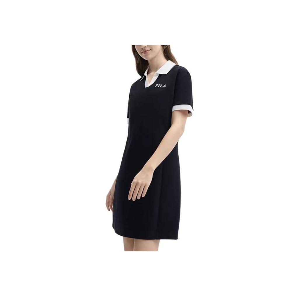New FILA ORIGINALE SS24 Short Sleeved Dress Women's Jet Black F51W429301F-BK