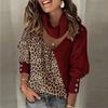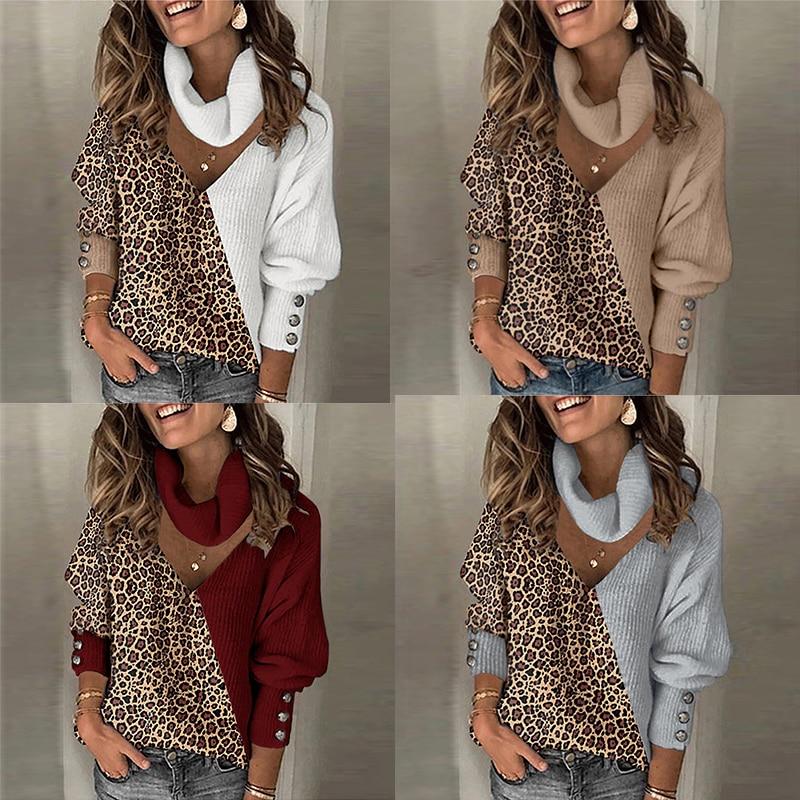 Женские свитера Вязаные свитера с леопардовым принтом и лоскутным принтом Водолазки Пуловеры Весенние пуговицы Длинные рукава-фонарики Свободные женские свитера