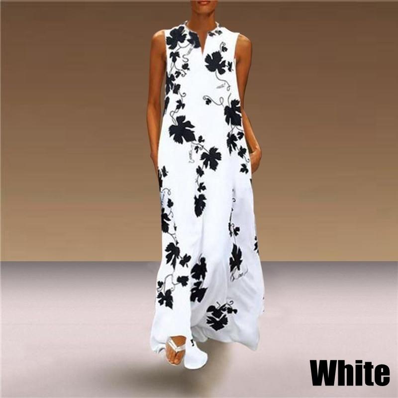Длинное элегантное вечернее платье без рукавов с V-образным вырезом и принтом, женское богемное повседневное пляжное платье размера плюс
