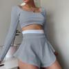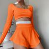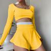 Модный спортивный женский новый костюм с облегающим топом и сексуальными кюлотами в сочетании цветов