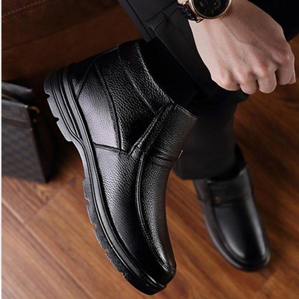 Подходит для зимы, мужские ботинки из натуральной кожи, плюшевые мужские теплые зимние ботинки высокого качества, оксфорды, мужская обувь, хлопковые ботинки