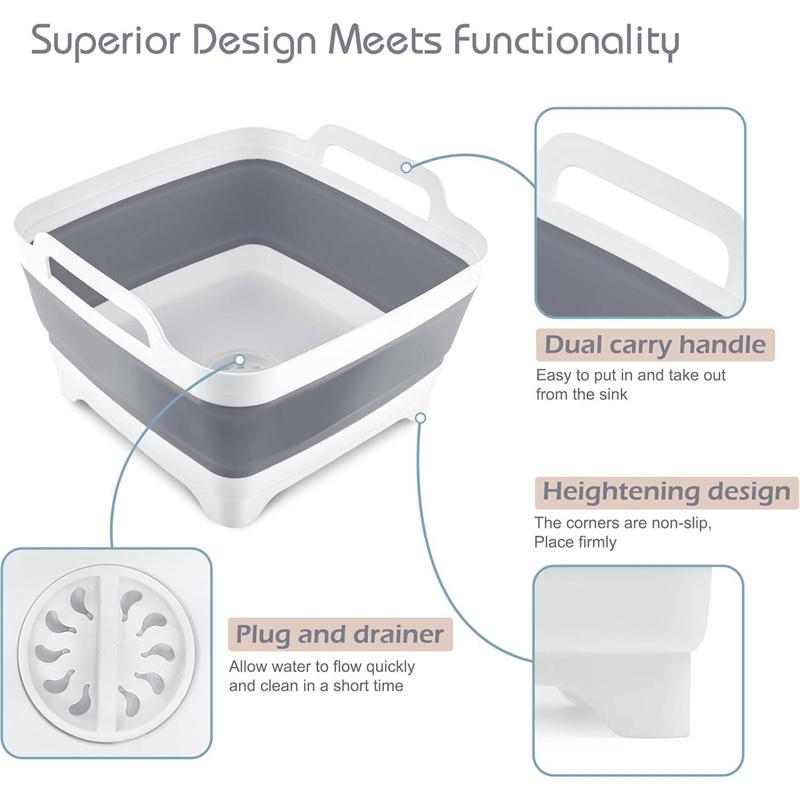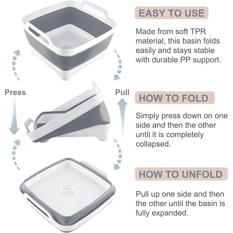 9-литровый складной пластиковый таз для мытья овощей со сливной пробкой для хранения посуды, мытья овощей и фруктов, ведро для охлаждения