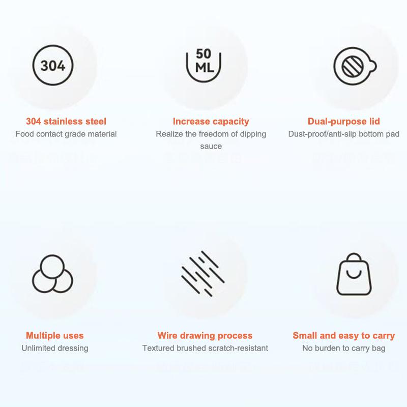 Контейнер для соуса и приправ из нержавеющей стали 304 50 мл Чашка для соуса Силиконовая крышка Герметичная Салатная соусница Маленькая коробка для хранения