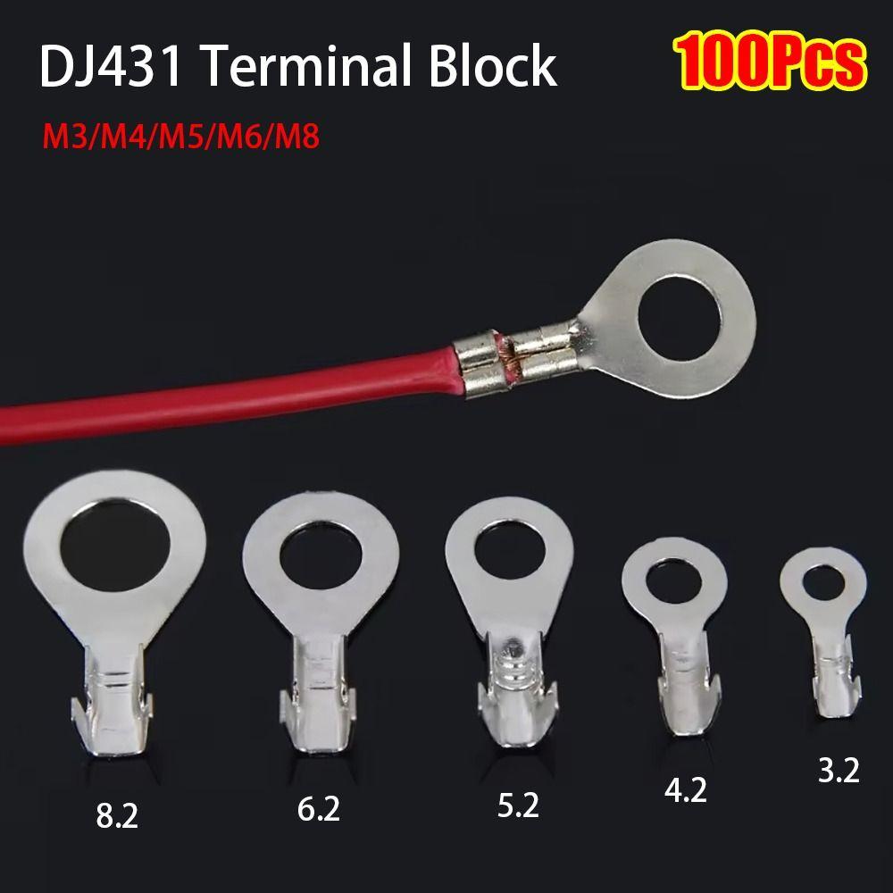100 шт. Луженые кольцевые наконечники M3/M4/M5/M6/M8 Проводной соединитель Новый клеммный блок DJ431 — купить товар онлайн с бесплатной доставкой по всему миру!