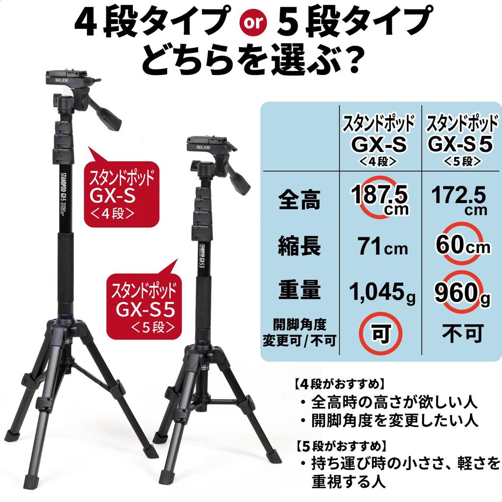 SLIK STAPODGXS5 Смартфон Стенд Стенд-подставка для видеоштатива Трубка 24 мм 1725 мм Быстросъемная площадка Компактный штатив, Камеры, Замок, Диаметр, 3-ходовая головка, Высота,