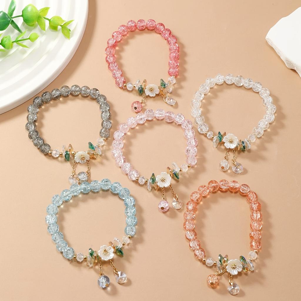 Набор из 6 элегантных браслетов в стиле Y2K с цветком камелии и стеклянными бусинами, ювелирный подарок для женщин и девушек, сувениры для вечеринок, аксессуар на День святого Валентина