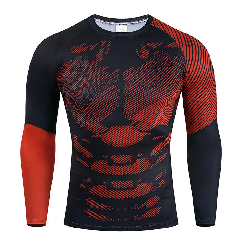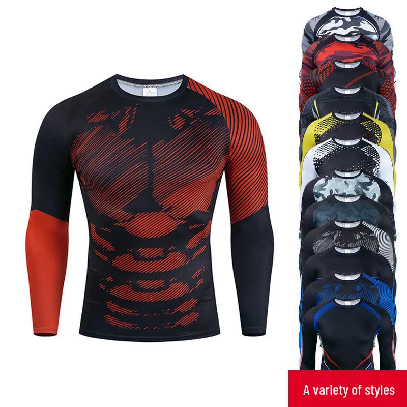 Мужская спортивная компрессионная футболка с длинным рукавом - Эластичная, Дышащая, для баскетбола, бега, фитнеса.