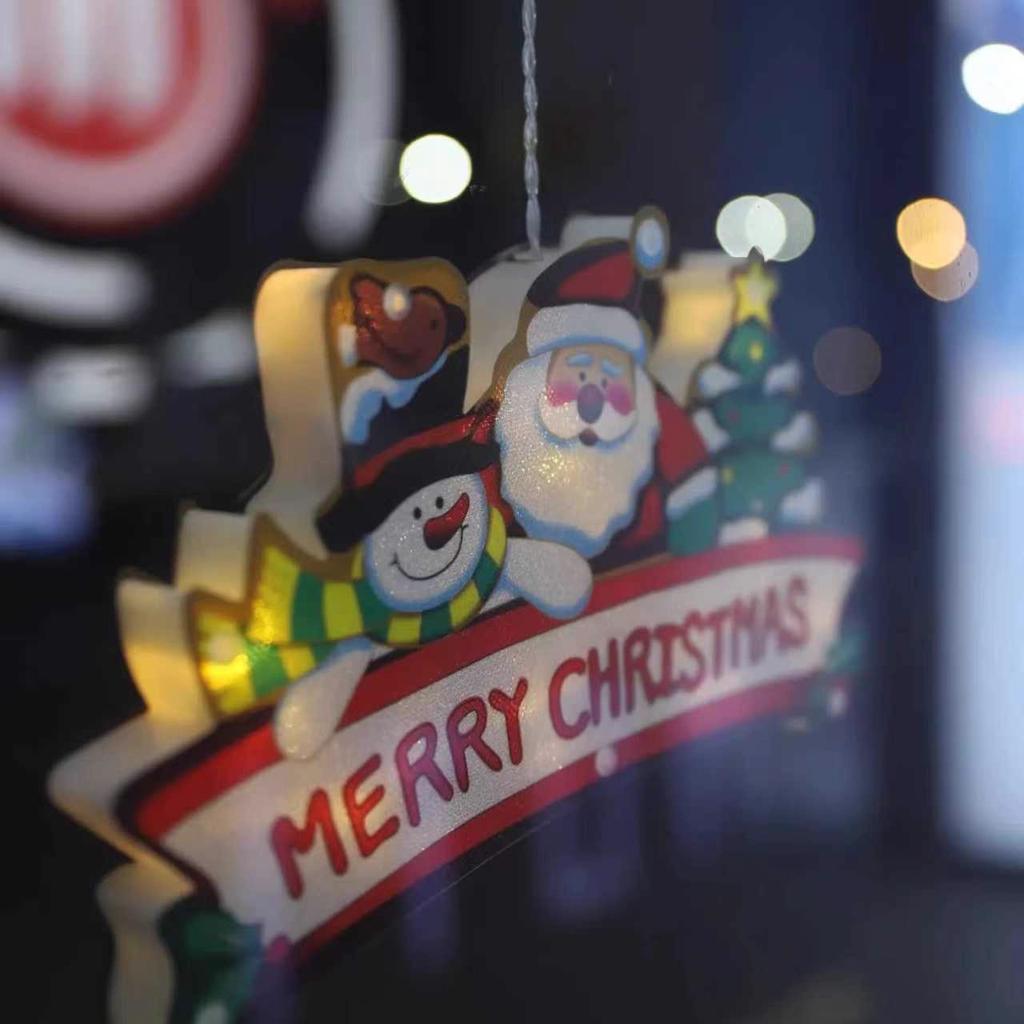 Рождественская подвесная светодиодная лампа на присоске, свет, Санта Клаус, снеговик, праздничная витрина, новогоднее украшение, принадлежность для рождественской вечеринки