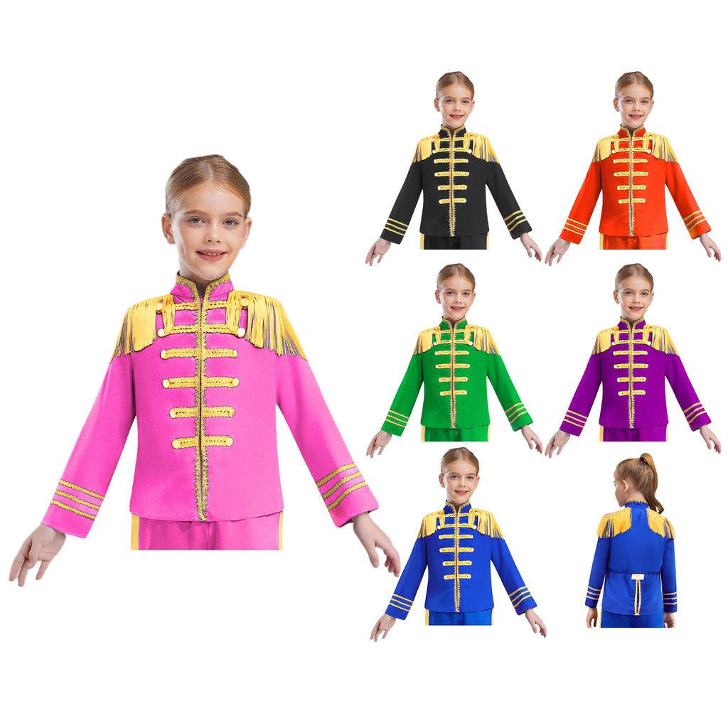 Детский костюм британской звезды 1960-х годов, топ с длинными рукавами и золотой кружевной отделкой для косплея музыканта рок-группы