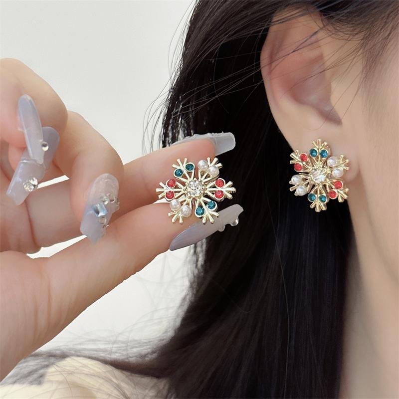 Зимние серьги-пусеты в виде снежинок для женщин, красочные акриловые кристаллы, корейская мода, маленькие серьги, рождественская вечеринка, ювелирные изделия