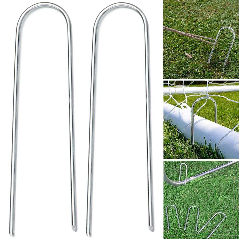 EASY TO ASSEMBLE: Use a rubber mallet to pound the stakes into the ground until the stakes are Pressing the U-shaped leg on your trampoline; sharp ends of stakes make it easy to insert into the ground.