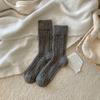 Серые шерстяные вязаные косами женские носки до середины икры - Ретро корейский стиль с оборками